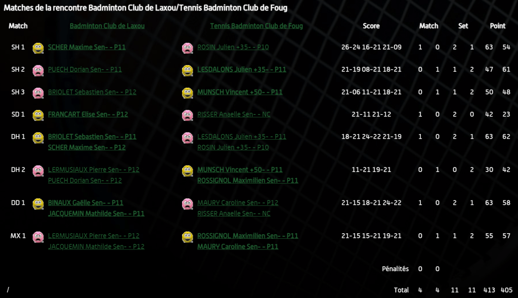 - Double hommes 1 : Défaite de Alex et Guillaume en 3 sets très accrochés.
