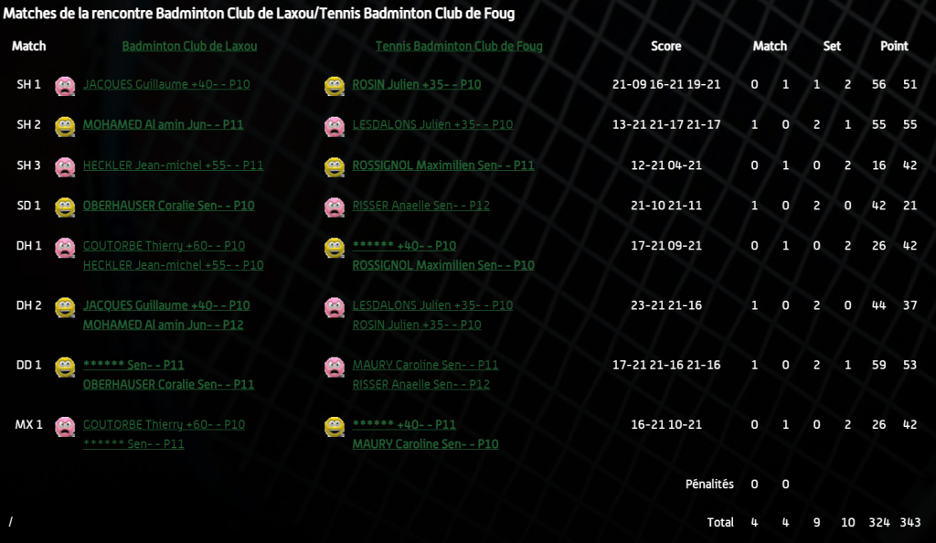 - Double Mixte : Défaite en 2 sets pour Thierry et Loredane.
