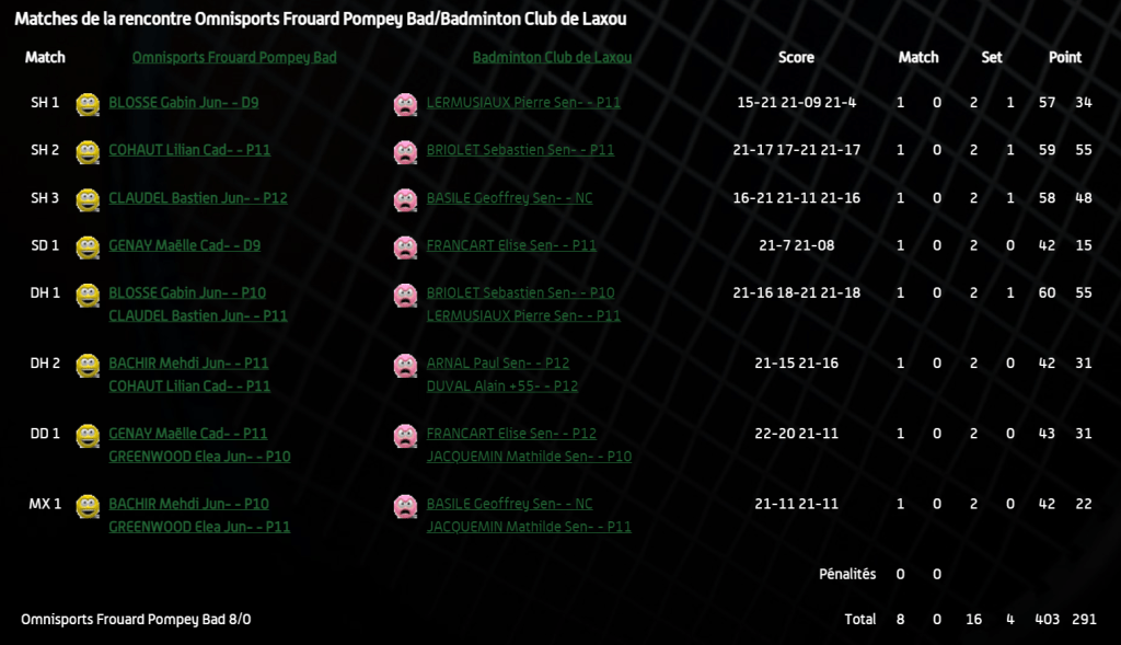 - Double hommes 2 : Victoire en 2 sets serrés pour Guillaume et Amin.