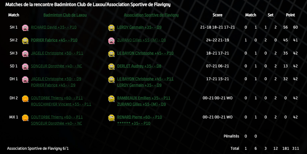 Troisième journée d’interclubs vétéran se soldant par une défaite 6 à 1 face une équipe de Flavigny venu gonflée à bloc !