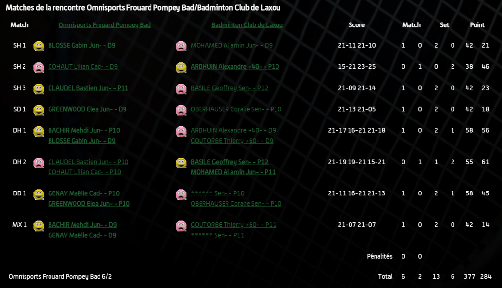 - Double hommes 2 : Victoire en 3 sets accrochés pour Amin et Geoffrey.