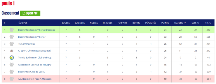 Equipe 1 en D1 :