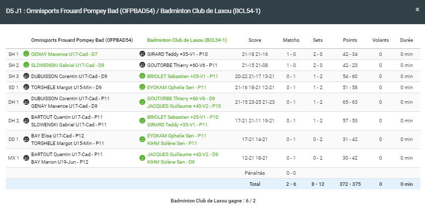 - Double hommes 2 : Victoire en 3 sets pour Seb et Teddy.