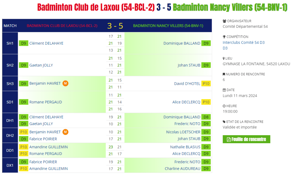 Sixième journée d’interclubs pour l’équipe 2 du BCL à domicile face à Nancy-Villers :