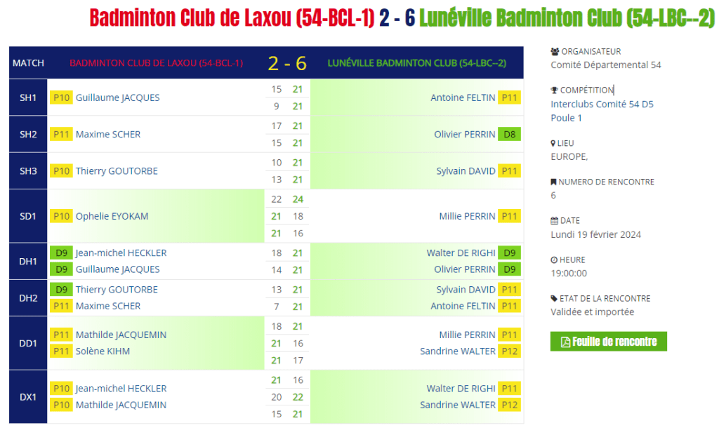 Sixième journée d’interclubs pour l’équipe 4 du BCL à domicile contre Lunéville :
