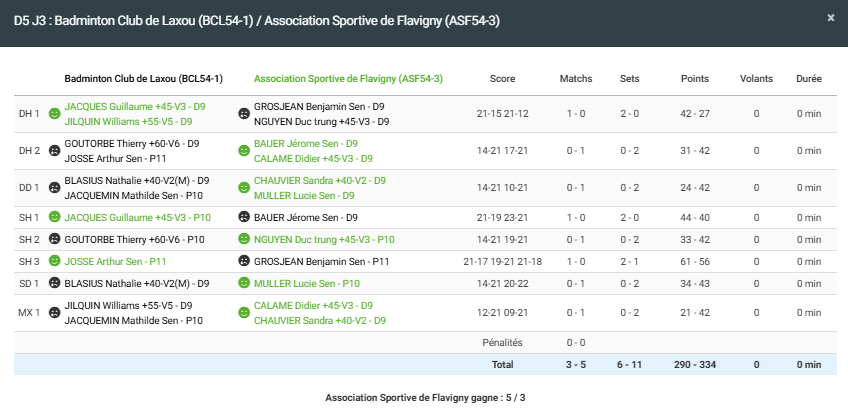 - Double homme 2 : Défaite en 2 sets pour Thierry et Arthur