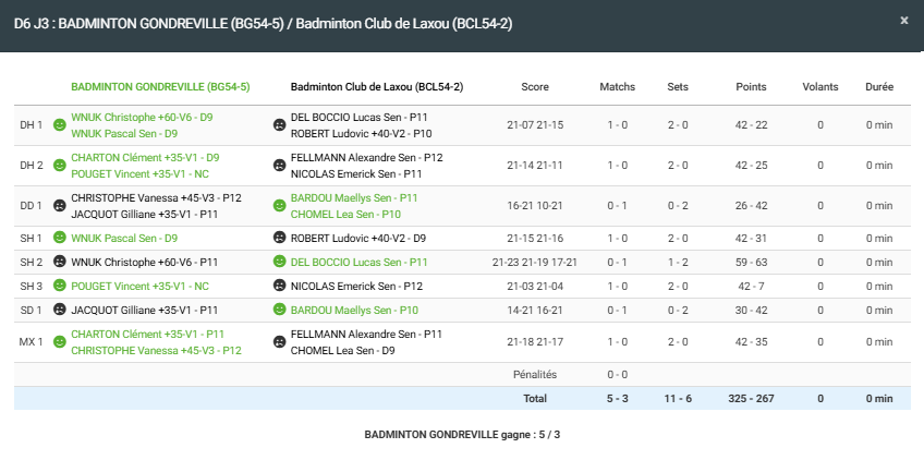 - Double homme 1 : Défaite en 2 sets pour Ludo et Lucas