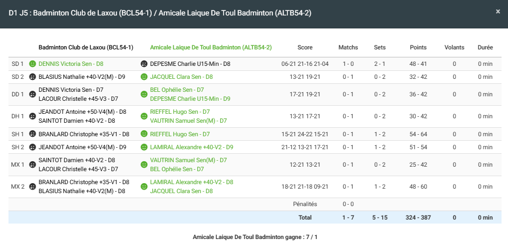 - Double homme : Défaite en 2 sets pour Damien et Antoine