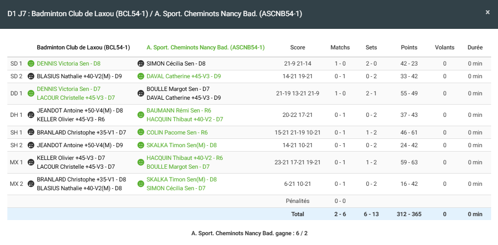- Double mixte 2 : Défaite en 2 sets pour Nathalie et Christophe