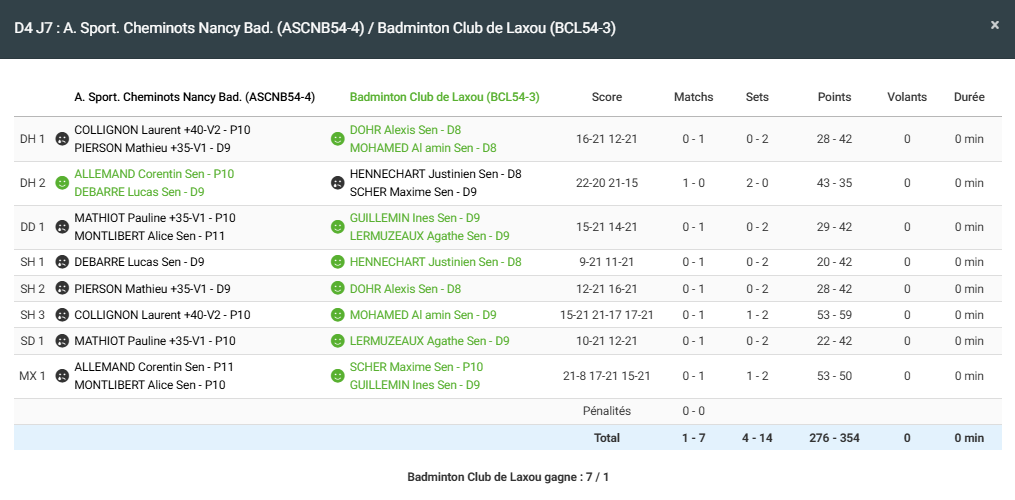 - Double homme 2 : Défaite en 2 sets pour Justinien et Maxime