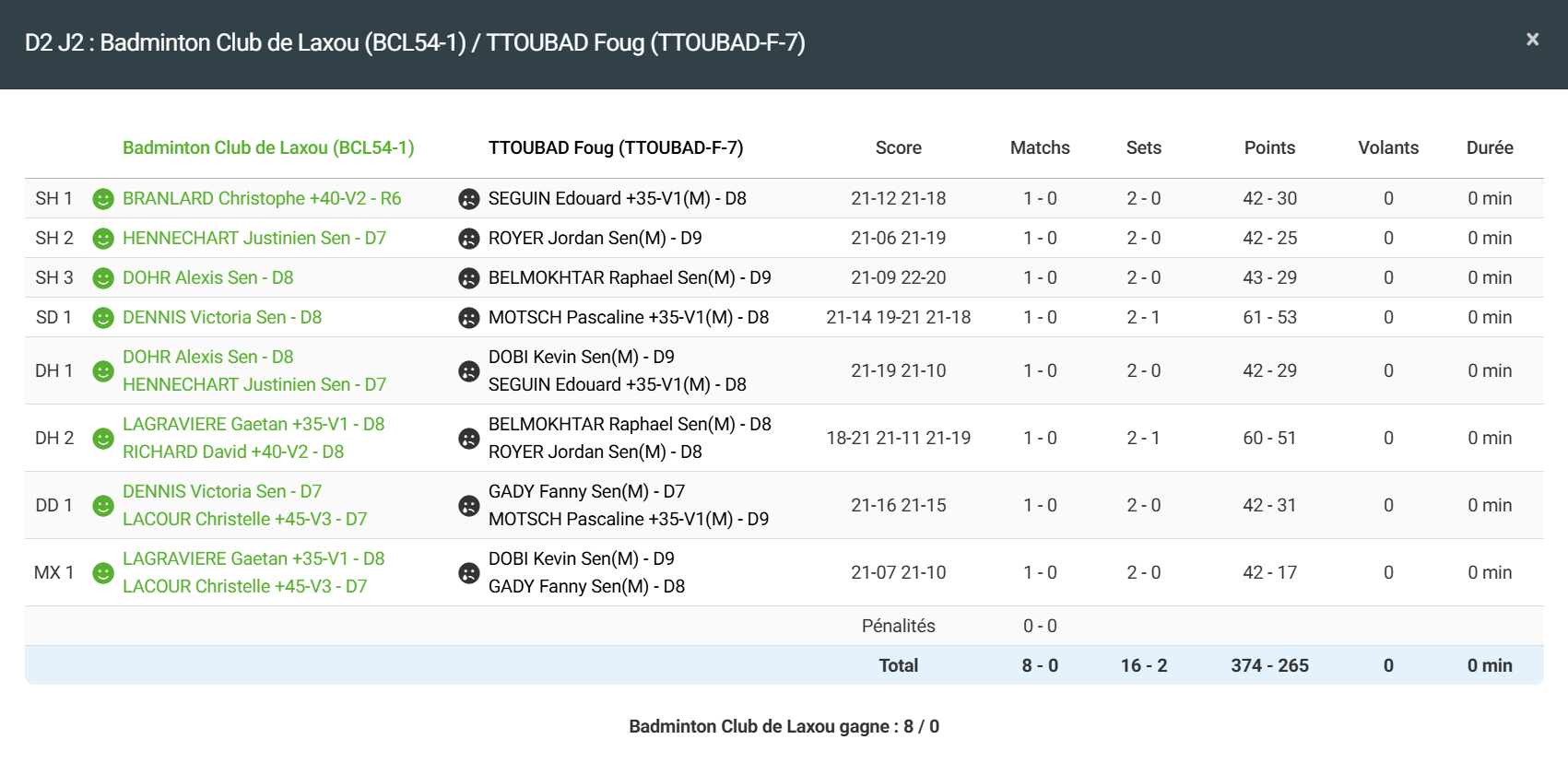 - Double homme 2 : Victoire en 3 sets pour David et Gaëtan