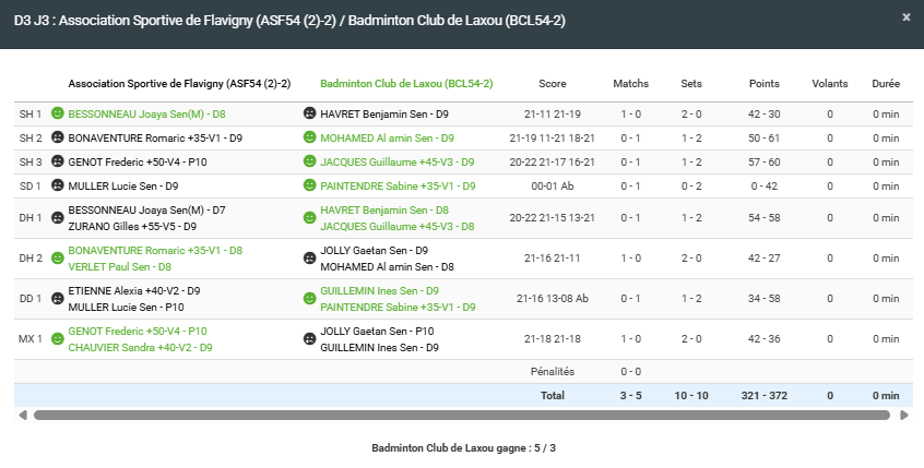 - Double homme 1 : Victoire en 3 sets pour Benjamin et Guillaume