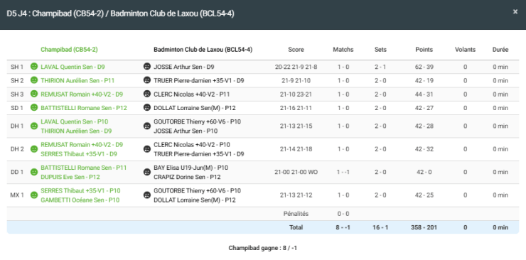 - Double homme 1 : Défaite en 2 sets pour Arthur et Thierry