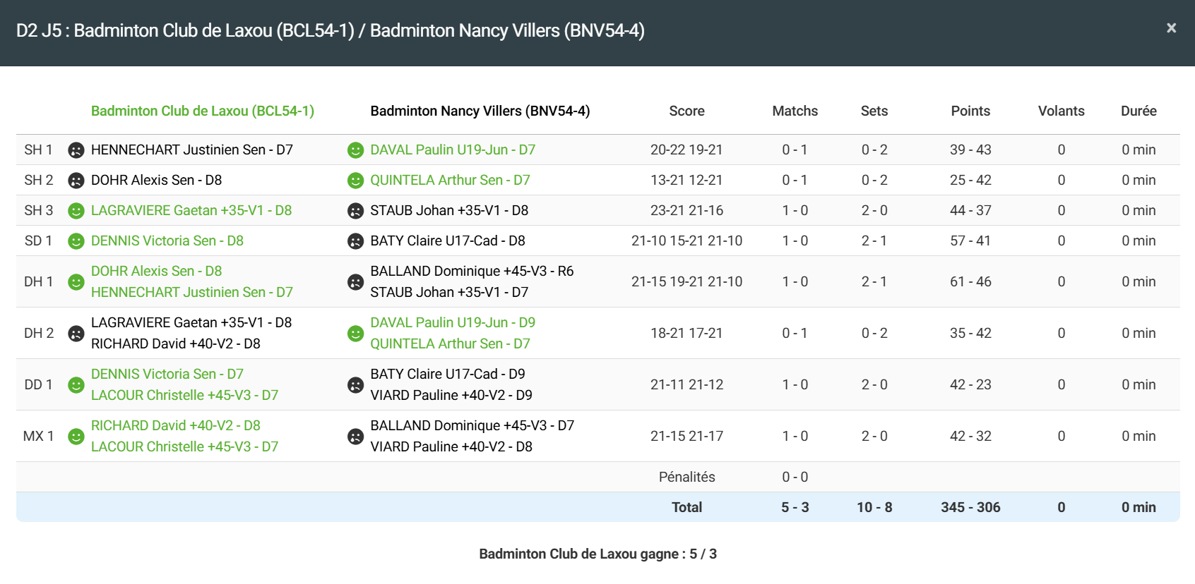 - Double homme 1 : Victoire en 3 sets pour Alexis et Justinien