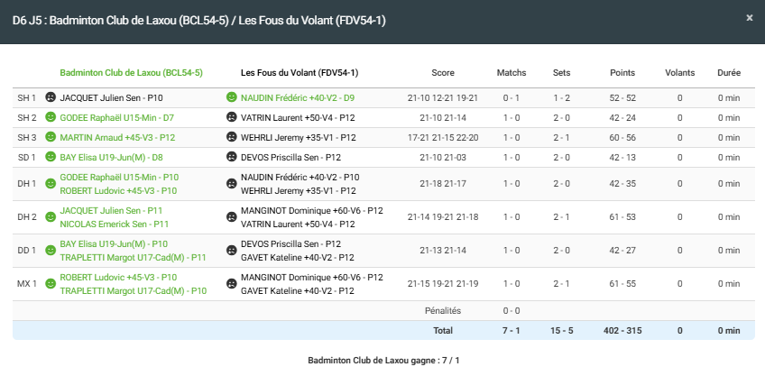 - Double mixte : Victoire en 3 sets pour Margotte et Ludo
