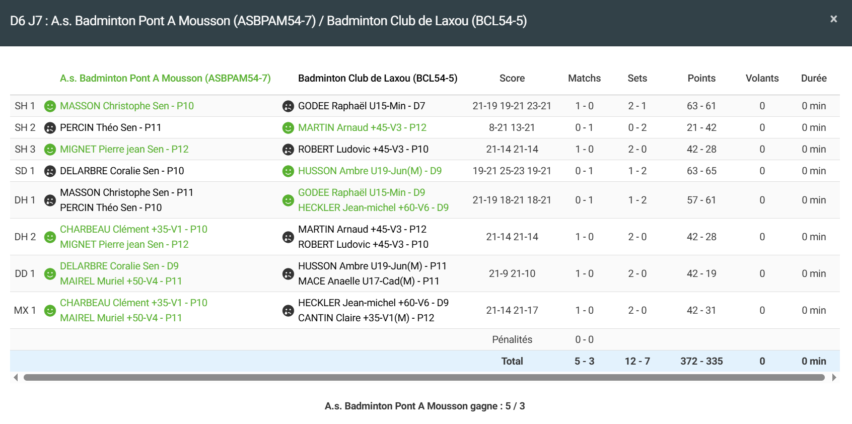 - Double homme 1 : Victoire en 3 sets pour Jean mi et Raphaël
